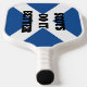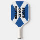 Scots do it better funny pickleball paddle racket. Create personalised sports paddles for player, fan, coach, team, mum, dad, friend, husband, wife, kids etc. Personalise with your own name monogram initials or funny quote. Professional quality game rackets for men, women and children. Background colour can be changed too. Double sided print. Custom trim colour. Cover optional. Flag of Scotland design. Fun Birthday or Christmas present idea.