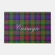 Elegant and interesting door welcome mat featuring the wonderful Scottish Clan Carnegie tartan plaid, with custom name.