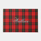Elegant and interesting door welcome mat featuring the wonderful Scottish Clan Wallace tartan plaid, with custom name.