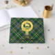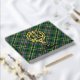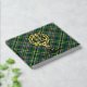 Clan Scott crest badge surrounded by a strap and buckle over green tartan background. Custom front, back and spine text.