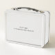 This is a standard metal lunchbox that appears to work just fine. We designed this box ourselves with an uploaded photo and custom text on the front and back. It looks absolutely beautiful except the front of the lunchbox is not centered like it shows in the photo. The print borders don't align with the inset flat part of the box where the preview photo online showed it perfectly centered in there. The back looks nice and centered though.