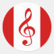This round sticker sports my official logo.  The logo design is based on the Canadian flag with a white background and vertical bars of red on the left and right sides of a circular emblem.  In this logo design the red maple leaf normally found on the Canadian flag has been replaced with a red treble clef.