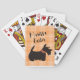 Scottie dog playing cards are adorable with a scottie dog wearing an orange bow with orange houndstooth background.
