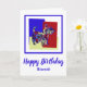 Scottish Terrier / Scottie dog silhouette butterfly abstract on bright red, blue and yellow rectangles. Fun birthday message on the front of the card along with inside ‘Hope your birthday is just like you. PAWESOME‘ can be changed to anything you want.