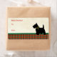 Black Scottish Terrier Dog with Christmas Holly collar with Scotch Tartan Plaid Holiday Pattern. Perfect personalised holiday gift tag for pet owners and animal lovers.