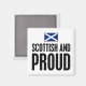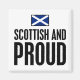 This item shows the Scottish saltire in patriotic blue and white, with the name "SCOTTISH AND PROUD" written in black bold lettering.