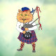 A remake of a Scottish cat playing the bagpipes by Louis Wain cat illustration from the early 1900s