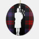 Silhouette of a bagpiper graces a proud Scottish tartan on each side.