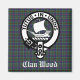 Scottish Clan Wood crest badge on clan tartan plaid pattern background. White Old English style customizable text.
