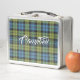 Amusing lunchbox featuring the tartan plaid of the Scottish Campbell family complete with customisable name.