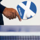 Scottish flag custom table tennis ping pong paddle. Personalised sports game gift idea for tabletennis players. Flag of Scotland design personalised with name or monogram. Customisable background colour. Make one for your friends, kids, co worker, colleague etc