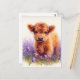 Scottish Highland Cow Calf Purple Wildflowers Postcard