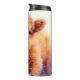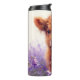 Thermal tumbler featuring a watercolor painting of a brown Scottish Highland calf in a field of purple wildflowers. A piece of adorable Scottish Highland Cow decor perfect for a country kitchen.