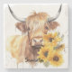 Scottish Highland Cow with Sunflowers. Editable Stone Coaster