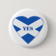A badge for lovers of Scotland who support Scottish independence. The word Yes in blue lettering is in the centre of a heart shaped flag of Scotland with a blue outline on a white background. The design is inspired by the referendum on independence for Scotland from the UK Westminster government.