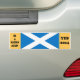 This bumper sticker for supporters of independence for Scotland from the United Kingdom Westminster government urges Scots to be a nation again by voting yes in the 2014 referendum. In the centre of the sticker is the Scottish saltire flag. 'Be a nation again' is a phrase from the song 'Flower of Scotland,' Scotland's unofficial national anthem.