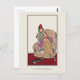 A postcard with a portrait of a fashionably dressed woman sitting on an overstuffed chair, holding a parasol with a cat at her feet. An Art Nouveau fashion plate by the Danish artist Gerda Wegener (1886-1940) entitled Scottish Silk Jacket and Crepe Skirt (1914), which has been digitally altered and enhanced. A fashion illustration from the French Journal des dames et des modes.