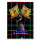 Funny dog character dressed as a Scottish bagpiper wearing a red kilt on a green vintage tartan striped background and patriotic lion rampant flags of Scotland and blue Scotland. Visit the VINTAGEPRINTS STORE for matching products and more fun cute animal character collages.