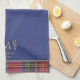 red and navy blue tartan,rustic farmhouse custom monogram,personalised customised kitchen towel,personal name check pattern,scottish checked chequered dishcloth,add your own gold text,united kingdom family surname,country plaid initialled initial,classic traditional scotland chef,british uk countryside cook