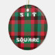 "SIT" and "SQUARE" Text: These words introduce a textual element, creating a unique juxtaposition with the traditional tartan.