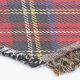 A quality printed throw has its advantages. This is a much finer weave throw than its loopier cousins, and though lighter, it is worth the investment for custom room accessorizing. The back is much prettier than the typical brown, and the fringe on the long sides very vivid, the selvage nicely done. Before photographing, I washed the throw in cold water, delicate, with a thicker woven throw the same size. On tumble dry low, this throw was dry in half the time as the other. This is a very practical quality if you use throws for furniture covers or to wrap up in frequently. The sleekness of the fabric makes it a great layer for accenting or protecting without the feeling of sitting on too much stuff. Perfect for napping or when you feel a light chill coming on. The color printing is beautiful and on this fabric, matched the design and color of my Photoshop image. This is an advantage for blending room fabrics and colors. The fringe on the short sides prints the colors from the design image and therefore varies from the side fringe. I streaked a white fractal line through the plaid pattern to give the illusion of weaving. This printed as crisp as an illusory thread, and put some white in the short side fringe, showing another advantage of print vs loomed- for artistic purposes, line lines, detail, and color integrity can be planned and preserved. My loomed throws have color limitations and more of a needlepoint texture. Print throws reproduce an exact image. The throw felt a little stiff straight out of the package, but this went away in the first delicate wash. Of course I searched the wash water for ink or bleeding and there was none.