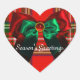 SCOTTISH TARTAN AND RED GREEN BOWS CHRISTMAS HEART STICKER
