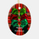 SCOTTISH TARTAN ,RED GREEN BOWS AND CHRISTMAS TREE CERAMIC TREE DECORATION