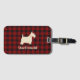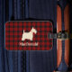 A Scottish-inspired design featuring a silhouette of a Scottish Terrier set against a deep red tartan background. Add a name for a truly personalized gift for yourself or someone special.