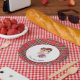Scottish themed baby shower paper plates for all those Scottish pregnant ladies expecting a wee burn with the cutest little baby in a red and green tartan beret along side traditional flowers of Scotland; purple thistles.