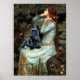 Ophelia (seated) by John W. Waterhouse (1898), adapted to include a Scottish Terrier. Waterhouse based this painting on Shakespeare's Ophelia.