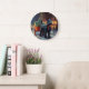 Wall Clock, 25.4 cm Round Black Wooden Frame