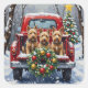 Add dignified, spunky charm to your holiday season with this classic Scottish Terrier Christmas design! This festive scene features three handsome and whiskered Scottish Terriers (Scotties) sitting attentively in the back of a classic red pickup truck, nestled in a picturesque snowy winter forest. The vintage truck is adorned with a vibrant Christmas wreath, twinkling with red and gold ornaments and warm, glowing lights. Soft snowflakes gently fall, enhancing the winter wonderland effect. A decorated Christmas tree in the background completes this heartwarming picture, making it an ideal Christmas gift for any Scottish Terrier owner, dog lover, or admirer of festive and beloved dog breeds. This design perfectly captures the joyful spirit of the holidays.