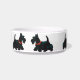 This is a heavy, durable bowl decorated with Tibbies of many colors, the perfect size for hungry/thirsty Tibs. The design is interesting and printing clear.