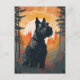 A colourful design artwork of a Scottish Terrier in the Forest during sunset