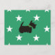 Hand drawn Scottish terrier dog with green bow, on Green background with white stars.