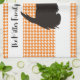 Adorable black scottish terrier with orange houndstooth background adorns this quality made kitchen towel.