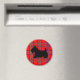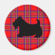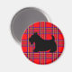 A black Scottie dog stands out against a red plaid on this magnet. The designs are from original illustrations.