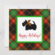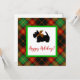 This cute card makes a great insert with a host/hostess gift, stocking stuffer, gift exchange gift or any of the thrifty gifts in this collection. . Cute jaunty black Scottie Dog wearing a green scarf with red pom poms looks so festive on the kitchen counter waiting for a hot dish, or on the wall for a holiday look. Coordinates beautifully with the dish towels, coasters and mugs using the same theme.