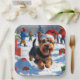 Scottish Terrier Running Snow with Christmas Hat Paper Plate