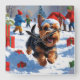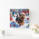 Scottish Terrier Running Snow with Christmas Hat Square Wall Clock