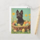 Celebrate Easter with the charming Scottish Terrier in this vintage-style postcard. Featuring the beloved Scottie dog surrounded by colourful Easter eggs, blooming spring flowers, and festive holiday accents, this design captures the timeless charm of the breed. Perfect for collectors, dog lovers, and fans of nostalgic holiday art, this postcard is a delightful keepsake for Easter.
