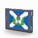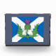 This design by Richard H. Fay features the thistle, floral emblem of Scotland and an important Scottish national symbol since the 13th century, displayed on the blue-and-white saltire of the Scottish flag.