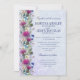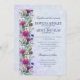 Elegant Scottish wedding invitations with a lovely floral theme. Featured is the magenta Thistle, official flower of Scotland, with daisies, forget-me-nots, blue sea holly and other florals. Butterfly and Dragonfly hover on border. Soft faux texture background on front and back in light blue with magenta accent on border. Other matching items are available in this lovely Scottish Wedding theme.