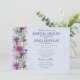 Elegant Scottish wedding invitations with a lovely floral theme. Featured is the magenta Thistle, official flower of Scotland, with daisies, forget-me-nots, blue sea holly and other florals. Butterfly and Dragonfly hover on border. Soft faux texture background on front and back in light blue with magenta accent on border. Other matching items are available in this lovely Scottish Wedding theme.