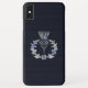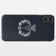 A silver chrome like Scottish thistle applique design on a racy navy blue carbon fibre style print background for a great custom device skin gift.