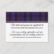 Stylish Scottish wedding tartan plaid enclosure information card done in white with a stripe of the regency blue clan Dundonald tartan and a gold band runs along the top, of the card, with the plaid covering the backside. Personalise all text to read what you want. Matching wedding products are available.