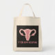 A tote bag with a message to the Supreme Court of the United States and the overturning of Roe v. Wade. Pink uterus graphic with "f*ck off SCOTUS" text