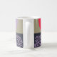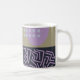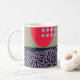 This mug has a mid-century modern abstract design with three different backgrounds, zigzag lines, ovals, and circles, in navy, light blue, red, khaki, and lavender. If you want the same design with different colours, message me.
