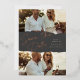 A unique save the date design featuring two horizontal or portrait orientated photos, aligned at the top and bottom bisected by a deep grey element with a "torn" look. "Save the Date" appears in real foil handwritten script lettering, with your names, wedding date, and location alongside. Personalise the back with additional details, like your wedding website.