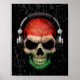This unique design by artist Jeff Bartels features a dark Dj skull painted with the flag of Hungary. Metallic headphones sit on top of the old skull giving it the look of a music Dj. Large cracks snake across the bone which gives the skull an old and broken look. The background is covered in scratches and scuffs that can be customised to any colour you like and give the design an aged vintage look. This stylish Dj skull design is a great way to show off your love of music and Hungarian pride.